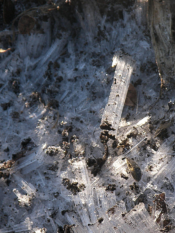 一昨日辺りから日本の上空に寒波が押し寄せているとニュースでやっていたが、昨日の午後辺りからこの辺もかなり冷え込んできた。日中なのに朝よりも風がめっぽう冷たく顔が寒かった。今朝の最低気温は恐らく今冬最低だったのだろう。 写真は寒さのせいで立派に育った?霜柱。ギリシャ神殿の柱のような氷の柱が朝陽を反射して、一時輝いて綺麗だ。今冬で一番長い霜柱だと思う。