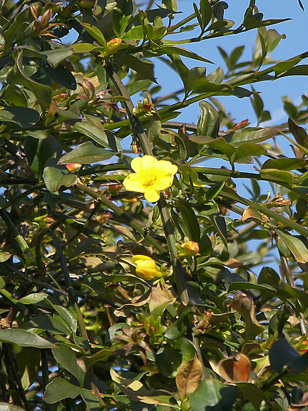 やっとウンナンオウバイが花をつけ始めた。散歩道の並木に新しく植えられたウンナンオウバイは剪定し過ぎたのか今年は花がついていない。これは民家の庭先の枯木をちょっと失敬して。