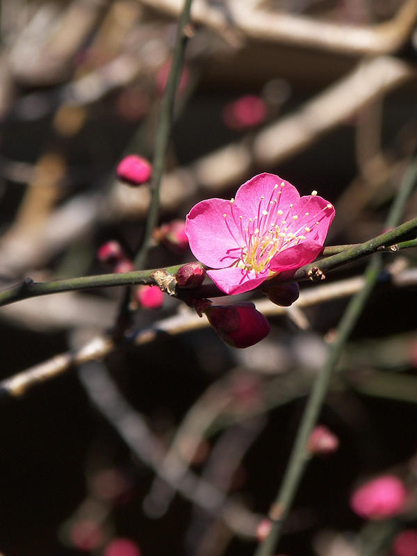 今日は節分、豆まき、追儺、鬼遣・・・呼び方は色々有るが「福は内 鬼は外」と叫んで豆をまく風習もかなり衰退したようだ。我が家では思い込みの激しい家人の主張で今年も小声で撒いたが、他の家からは毎年聞こえていた子どもたちの声も聞こえなかったような気がする。子供の成長や世代交代とともに衰退していく行事なんだろう。鬼はともかく明日の朝、鳥たちが思わぬ餌にありつけることも難しくなったようだ。 ところで、何となく節分と旧正月の日付が近かったり、イワシの丸干を焼いたりするので子供の頃は両方を混同していたような気もするが、良く考えてみると節分は完全に太陽運行と相関しており、「太陽黄経が315度となる立春」の前日となるので、春分・秋分・夏至・冬至 などと同じく天文学的な根拠の有る日と言うことになる。 今日の写真は鮮やかな紅梅。遠目に見ると紅梅は白梅に比べてコントラストが低くなるせいか目立たないが、こうして近づいてよく見ると実に鮮やかな花だ。 |