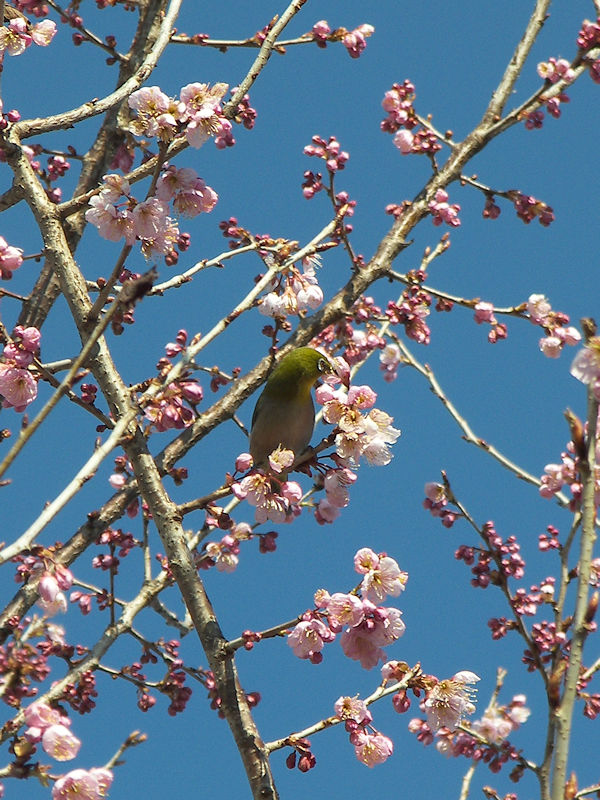 早咲きの桜の開花に従いメジロの姿を目にすることが増えた。蜜を吸うのか花を食べるのか知らないが、梅にメジロ・・・よりも桜にメジロの方が目にする。