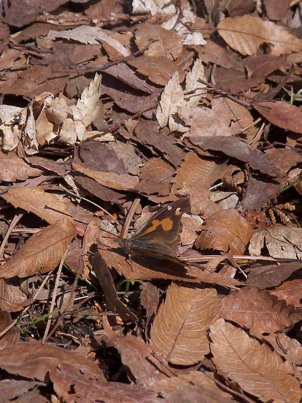 このところの日差しのせいだろうか? 近くの出早公園に出かけたら蝶が舞っている。「エッ」と思って近づくとどうやらタテハチョウの仲間らしい。枯れ葉の影で越冬した個体が暖かさで蘇生したんだろう。数羽見かけた。写真では保護色で見分けづらいと思うが、長い冬の厳しさを示すかのように翅の縁はボロボロで、よく飛べるものだと感心してしまった。