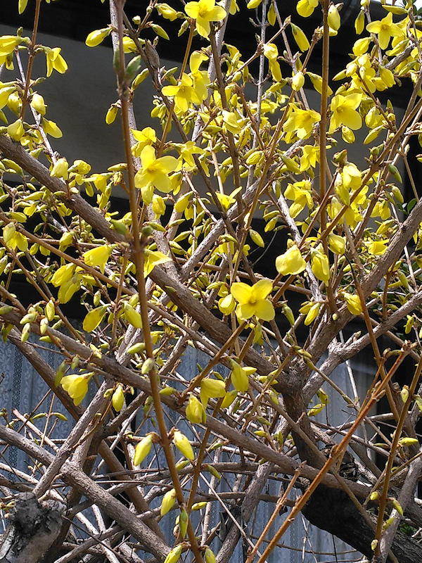 "相変わらず北朝鮮情勢についての(誰からも注目されない)岡目八目の独り言。 まずオープンセレモニーの行われた黎明通りの70階建て高層マンションが金正恩の指示で徹夜の突貫工事の末わずか1年足らずで完成したという情報。メディアの分析では経済制裁下でも経済発展は独自に問題なく進んでいるというアピールだとか。しかし朝鮮半島は地震がないとされており建物の構造は鉄筋なのか鉄骨なのかすら分からないが、いずれにしろ先進国の常識で考えるなら明らかに「手抜き」突貫工事を伺わせるだけでそんな事では技術の高度さをアッピールは出来ないと言う事も理解出来ていないのだろうか。このニュースで昔私自身が目にした韓国の工事現場の光景が再び蘇った。 今日新たに伝えられた米国側情報として、アフガニスタンのIS掃討戦で核兵器を除く通常兵器中最強の大規模爆風爆弾「GBU43B」を初めて実戦で使用したと発表したらしい。この爆弾は主に地下施設を破壊するのが目的とされるから、多分地下壕に逃げても無駄だと言う米国の金正恩に対するメッセージだろう。 今日の写真はこの辺りでも盛んに目にするようになったレンギョウの花。" |