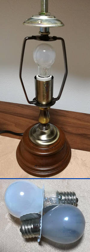 使えないサービス・商品を吊し上げてきたが、中には洗濯ハンガーのように使えないものも工夫で何とか使えるようになる場合もある。 写真は使った事がないからと頂いたアンティーク風のスタンド(電球部分が見えるように傘は外してある)。元々がアンティーク風なんだが、未使用で入っていた個装箱などからは多分 30年以上前の製品だと思われ、右の写真には無いが傘は彩色されたガラス製、台は木製、その他の構造部品はいぶした感じの金属で最近のプラスチック主体の製品とは明らかに異なって趣がある。こうしたものに目のない家人はとても喜んだが、しかし電球を差し込んで点灯させてみたら数分で電球のフィラメントが切れてしまった。電球は窒素ガスが新品時と同様に封入されていれば時間が経ってもフィラメントが劣化することはないだろうけど、多分口金部分の封止が甘く窒素が抜けて酸素が僅か混じったのではないだろうか?期待していたのに使えなくなったと残念がる家人が「絶対に直して」と言うので、近くの大型家電店で探すと同じ口金サイズの電球があり早速買ってきたが、写真の下のように新しい電球は古いものに較べて 7mm程度だが長さが長くて(手前の若干黒く見える方が古い電球)、交換しようとしたら上部の傘の支えが邪魔になって新しい電球は口金部分がソケット部に入らないことが分かった。違う電球を探さないとダメか!と諦めかけたが、店頭の記憶ではそんなに全長の短い電球は売っていなかったような? と思いつつ傘の支え部分を見ていてふと思いついた。六角形になっている支えの金属は結構頑丈ながらもいくらか柔軟性があって、思い切り力を加えれば少しは変形させられそうだ。六角形だから横方向をひしゃげさせることが出来れば縦方向に伸びるから長い電球も入りそうだ。そこで両側から思い切り掌で押してみた。結果、期待通りいくらか変形したようで新しい電球がソケットに挿入できた(写真は交換後の新しい電球を装填したところ)。交換後に再び形状を戻して・・・とも思ったが、数mm程度の変形では傘が若干持ち上がるだけで被せてしまえば分からないからとそのまま使うことにした。 今日の写真は十月桜。10日ほど前に神奈川に戻ったので朝の散歩を再開した。酷寒の信州とは違い朝の冷気が気持ちいい。 |