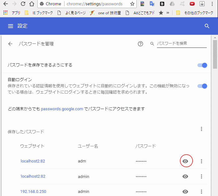 | -1999- Chrmeの保存パスワード |