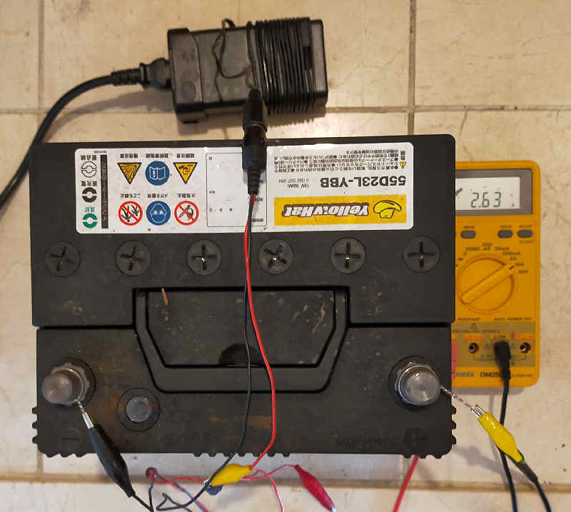 今日は朝からこの辺りはゲリラ雷雨。その最中、家人が出かけるので立体駐車場から車を出そうとしたら・・・・リモコンキーが効かない。あれっ!?キーの電池が切れたかな? と思いつつ、鍵でドアを開けてエンジンをかけようとしたらエンジンがかからない。ウンともスンとも言わない。この時点に至って「そう言えば、この間 ワクチン接種に行った時、屋内駐車場でルームランプを点けたっけ?」と思い出した。万事休す。 幸いにして雷雨は小止みになってきたので 家人には駅まで歩いてもらって、近くの車屋にHelpを出そうとか、いっそ自転車で新品バッテリーを購入してこよう、とか頭の中は対応策がグルグル回った。 しかし、どの方法も結局は 一旦ボンネットを開けてブースターケーブルを繋いで・・・というプロセスが必要。と考えるうちに、思い出したのは遥か昔(2000年より少し前) IBM の Note PCの PC本体が使えなくなった際にこんな事もあろうかと、ACアダプタを改造してあった事。 最近の Note PCの ACアダプタは 20V弱で 2A程度のものが多いが、当時は電流容量がずっと多かったので、車の充電にも使えそうだと思い切り長いリードを付けて、自宅内の ACコンセントから外の車に充電できるようにしたもの。これが確か車のトランクに入れてあったはず・・・・と思って探すと あった。記憶が曖昧だったが ACアダプタの規格は出力 16V-10V/2.2A-3.2A となっていて 丁度 12Vバッテリーの充電に都合がいい仕様だ。しかし、いくら長いリードを付け足してあったとしても流石に大規模マンションの立体駐車場に駐車したままでは ACコンセントがない。 そこで、車のボンネットを開けて バッテリーを取り出し、この改造ACアダプタと共に部屋に持ち帰り充電することに。 写真のように家の玄関で充電すると、2.5A ほどの充電がされている。バッテリーは 55Ahだからフル充電には20時間以上かかる計算だが、エンジンがかかるためには 1~2割充電されていればいいはず。思い出せば、今まで3回ほど使ったことがあったと思うが、30分程度でエンジンがかかった事もあったと思う。 それにしても、最近の車はサイドランプやルームランプなどタイマー付きだと思うが、もう十年をとおに過ぎた我が家の老馬はそんなフェイルセーフはついていない。今度はルームランプを LEDでタイマー内蔵にしてみよう。・・・市販でもありそうだが。 (いずれにしてもパソコン用の ACアダプタを車のバッテリーの充電に使用する場合、明らかに絶対最大定格を超えて使うことになるので、真似をする場合は発熱などに注意して自己責任で!) | |