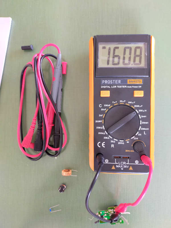 もう先月になるが、久しぶりの散財。 暇を持て余して? DC/DCダウンコンバータを自分なりのアイデアで作ろうと思ったが、色々分解などで溜め込んできた部品の仕様がはっきりしない。抵抗類はデジタルテスターがあるが分解品からは最近はチップ部品になってしまったので殆ど再利用出来ない。一番はコイル(インダクター)なんだが、分解品では諸元がはっきりしないことが多い。廃品利用しようにもインダクタンスが分からず「エイヤッ」では心もとない。しばらく前までは、諸元の分かっているコイルを使って抵抗とのブリッジ回路を使って測ったりもしたが、周波数設定やら半固定抵抗の接続などが面倒で最近はズクがない。それに デジタル LCRメータも中国製が随分安く(昔の感覚では「夢」のような値段で孫のおもちゃと同程度だ!)購入できるようになったので、Amazonをうろついていて 5,000円弱のをポチッてしまった。Netには安モノが 2,000円台からあるが 1mHまで測れるとなると若干高くなる。 写真では、この間分解した点灯しなくなった LED電球の点灯回路内のインダクタンスを測定しているところだが、160μHと表示された。大きさからは想像できないインダクタンスだが、小さなコアに細い導線を目一杯巻いているんだろう。電流値を増やして磁力線が飽和するポイントも測れればいいんだが、そこまでは望めない。 しばらくは楽しめそうだ。 | |