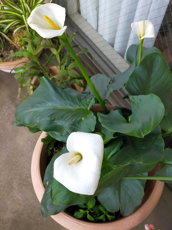 数日前の話だが、神奈川に戻るにあたって 車のタイヤをスタッドレスから普通タイヤに交換した。痛切に感じたのは体力の衰え! 15インチのラジアルタイヤを持ち上げて積み上げるのにかなり苦労するようになった。元来腰に不安があるので、態勢も慎重にしなくてはならないし。 最近かっての普通車が皆大型化して、ムコ殿たちも17~18インチのタイヤを履く車に乗っているが、もう私には無理だと観念した。(金もないので)。 交換して翌日、何とか腰痛を起こさなかったことにホッとして神奈川に戻った。幸いにして上りも停滞はなくスムースに走れたが、日曜日なのに割引料金ではなかった。何故? 今日の写真は何年かぶりにベランダのカラーに花がついた。しかも同時に3輪も。水やりが良かったのか? 肥料が効いたのか? |