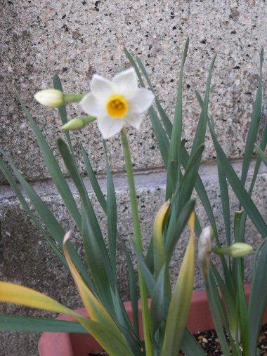 明けましておめでとうございます。 年の暮れから、ヨメさんの実家&娘の嫁ぎ先とはしごして、昨夜遅くに帰宅。今日は一緒に里帰りしてきた長女夫婦と新宿へ初買いに。 私はとりわけ買いたいものもなく(と言うか、買いたいものはあっても見合った金がなく)、暮れにサスペンスを読み終えてしまったので新しいサスペンスを物色。馴染みの作家の文庫本はもうすべて読み切ってしまったので、新しい作家を探してみた。が、それほど時間があるわけでもなく結局、「○○一位」というような帯の宣伝文句に惑わされてキャロル・オコンネルという女性作家の「クリスマスに少女は還る」というミステリーを購入。書評に曰く「緻密な構成のミステリー」。冒頭の 2~3ページを読んでみただけだが、かなり文体が他の作家とは異なっており、女性特有に抒情的だと感じた。 今日の写真は新春らしくスイセンの花。散歩道の脇の家の塀の外の鉢植えを失敬して撮影。しかし「しんしゅんらしく」の変換が「新春ら市区」とは!! 年末に住所を多く入力した影響なのか? MS Office IME にも困ったものだ。 |