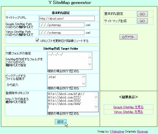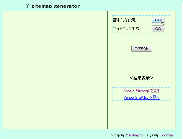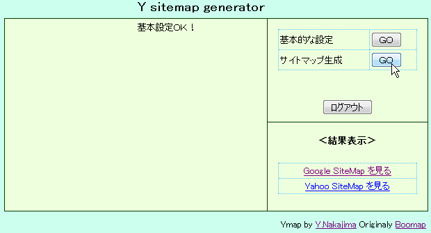 「基本設定OK」の表示が出たら、<サイトマップ生成>の<GO>ボタンを押す。