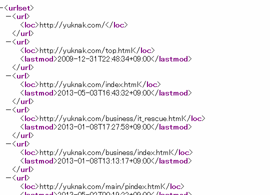 だから、基本は Boomapをお借りしてきて、このファイル検索部分を変更し、再帰的に下位ディレクトリを展開するようにして、ついでにファイル最終更新日付を取得して<lastmod>タグを付加するようにした。