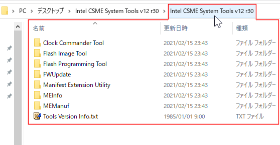 CSME System Tools からは、fit.exe / MEInfoWin64.exe / FWUpdLcl64.exe / FPTW64.exe / MEManufWin64.exe / cctWin.exe などの実行ファイルやその実行に必要な dllなどの関連ファイルが解凍できる(それぞれ Win64bit/32bit/linux版などが含まれている)。