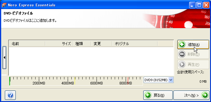 これは、古いNeroのバージョンの画面で、最近のバージョンはもっと横長だが、基本的には変わりなし。