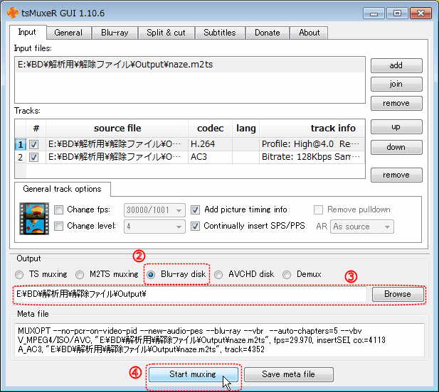 2. tsMuxerGUIを使ったオーサリング