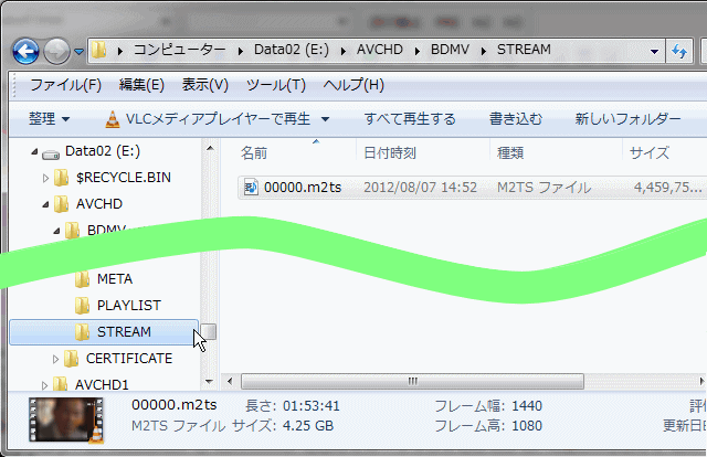 このファイルを VLCプレーヤなどの動画再生アプリのアイコンにドラッグすると再生できるので問題ないか確認しておく。