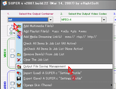 ⑨ 表示されたドロップダウンの中から Output File Saving Management をクリックする。