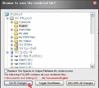 ⑩ フォルダー指定のウィンドウが開くので、変換後の保存先のフォルダを選択して、「SAVE Changes」 ボタンを押す。