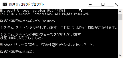 「整合性違反を検出しませんでした」と表示されれば問題ないことになる。