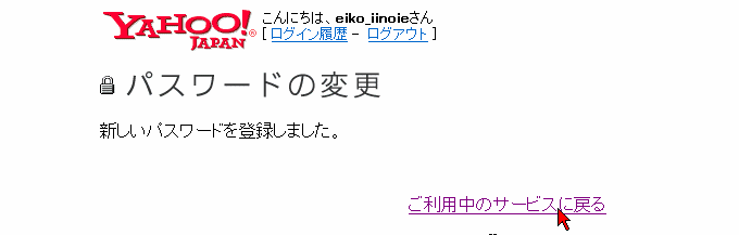最後はブラウザを閉じるか、「ご利用のサービスに戻る」でYahooのトップページに戻るはずです。