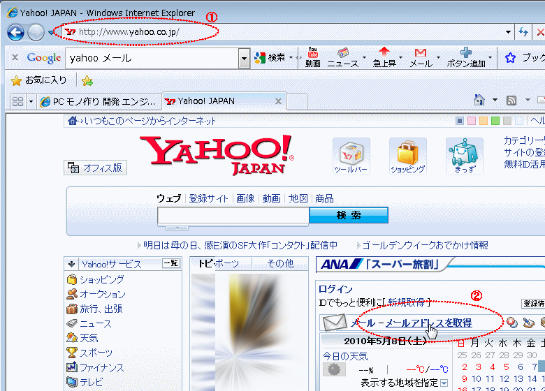 A フリーメール(Yahooメール)のアドレス取得