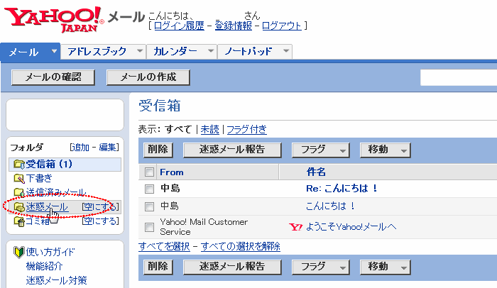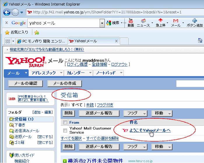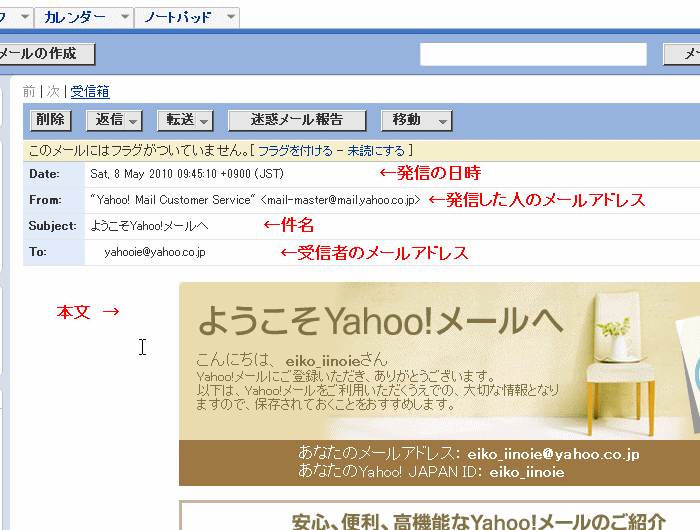 Yahoo のフリー(無料)メールアドレスでWebメールを利用する