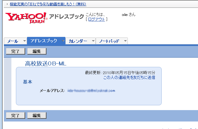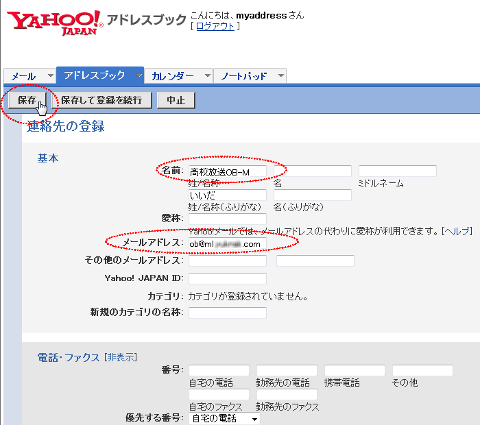 最後に「保存」ボタンを押すと保存されます。この場合、データは Yahooのサーバに保存されるので、この作業をしたパソコン以外のパソコンでも利用できます。