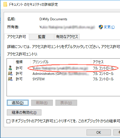 私の場合、パソコンは DOS以前の時代から使い続けており、現在の My Documents内のファイル/フォルダーには Windows98の時代に作成したものもある。それらのファイルを パソコンを更新するたびに 古い PCの HDDから新しい PCの HDDにコピーして使ってきたので、HDD上のファイルの所有権は雑多で現在の 私のアカウントではないものの方が多い。だから最近になってフォルダーをスマホ/タブレットと共有しようとして躓いた。パソコン外部から共有ファイル/フォルダーにアクセスしようとしても共有してあるはずが表示/更新/書き込みが出来ない。慌てて所有権を変えようとしたが、捨てるのが苦手な性格で合計ファイルサイズは数十GBもあるし、ファイルの数も半端じゃないのでとてもやってられない。