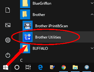Windows の 「スタート」から「Brother Utility」をクリックして起動する。