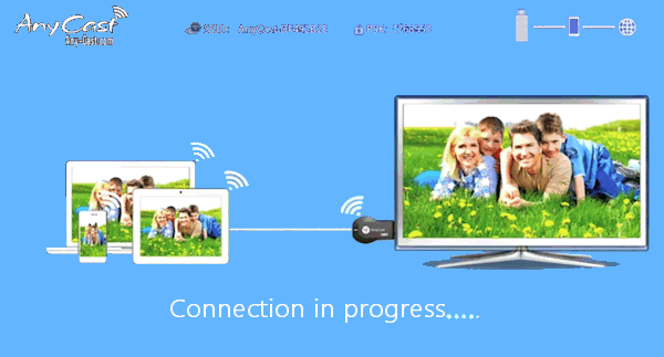 すると Android側の WiFi信号をアダプタが受信して 図-3の TVの画面表示が「Connection in Progress」となる。