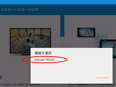 「検索」窓の「機器を検索中」のところに「Anycast-XXXXXX」が表示されたらそこをタップ。
