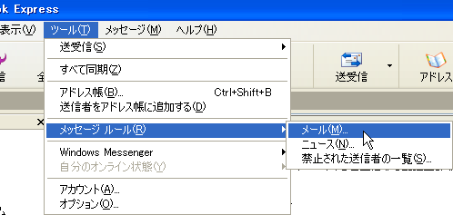 迷惑メール:Outlook Express で差出人が空のメールを拒否する