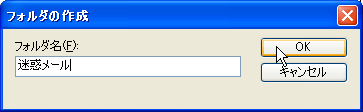 「フォルダ名」に例えば「迷惑メール」と入力して「OK」ボタンを押す。