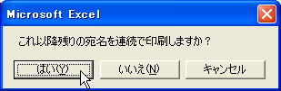 最初の印刷時だけ、右のような確認が表示され、「はい」をクリックすると以降は確認のダイヤログは表示されずに、連続で印刷されます。