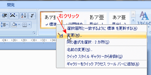 まず上の図のように 変更したいスタイルのボタンの上で右クリックして「変更」を選択する。