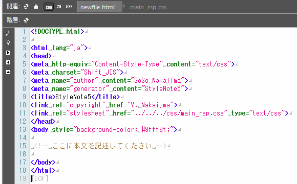 さて、いよいよ<body> ~ </body> 本体部分の編集に入る。