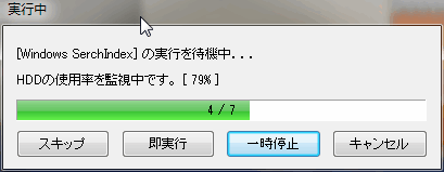 「HDD使用率」はその右側のドライブに指定したドライブへのアクセスが指定%以下になるまで待機する。今回は、ここで指定を加減してみた。1%刻みで設定が変えられるが、HDDへのアクセスは Windows起動の度に結構変動するので 10~20%単位で変更してもそれほど有意差が出と感じることはなさそう。