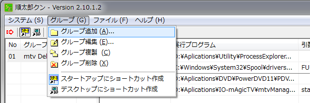 「順太郎クン」は(インストールは標準的なものなので割愛)インストールしたら、まず「グループの追加」で新規にグループを作る。