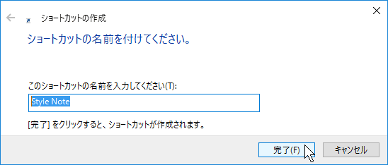 ショートカットの表示される名前に分かりやすい名前をつけて「完了」を押す。