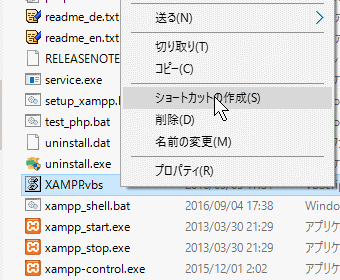 そのスクリプトファイルの上で右クリックして、「ショートカットの作成」を行う。