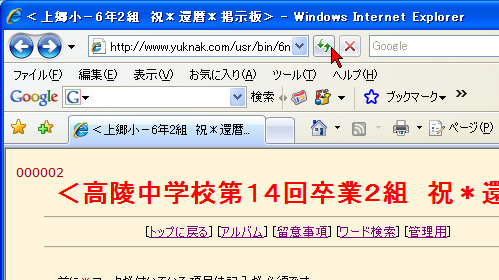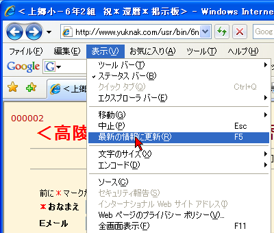 ブラウザ(インターネットエクスプローラ)の上の、「表示更新ボタン」を押します。