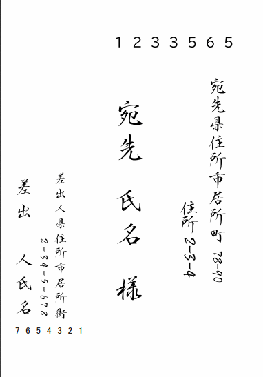 年賀状書きのシーズンになって、今年も筆まめで宛名書きしようかと思ったが、最近 PCのリカバリーなどしたためにインストールしてあった筆まめ(十数年前の Ver.11 超古!)が消えてしまった。どこかにインストールディスクがあるはずと探したが見つけられず、古いPCのディスクイメージから実行ファイルフォルダーや レジストリをコピーしようかと思ってやってみて驚いた。レジストリを筆まめ関連のキーで検索してみたら関連するレジストリだけで200Kbyte 以上ありそう。キー名などからするとどうやら住所録から電話したりメール送信したりするような機能も含まれているようだ(最新版は知らないが)。最悪 新しいバージョンを購入するのもやむ無し、と思っていたがこのレジストリの汚し様にビックリして購入は中止した。 ネットでフリー~1万円以下の代替ソフトを探したが使い方も、印刷結果も気に入ったものは見つけられずに断念した。 代わりに昔、さるところから依頼されて作った Excel VBAの住所録 > 宛名印刷マクロに手を加えれば、筆まめの住所録の csvエクスポートファイルを読み込ませて自動印刷ができるだろうと、1月ほど前に思い立って作り始めた。途中、その「さるところ」から昔作った Excelマクロの修正依頼が入ったりして(何というタイミングだ!)焦ったが、何とか両方こなせて年賀状の宛名書きも一昨日無事終わった。 唯一こだわったのは 住所の最後の番地などの数字。ワードなどの縦書きでは途中に半角英数字や半角ハイフン「-」が入るとフォントが 90度回転するんだが、Excelのテキストボックスではそのまま印刷されてしまう。(筆まめ Ver.11でもそうだったが。) どうせ自作するならと 右図のように住所末尾の半角数字は自動で回転させるようなプログラムにしてみた。 焦ったのでまだかなり荒い作りでとりあえず自分で年賀状印刷する用途に特化させたため とても他人が使える状態ではないが、郵便番号の赤枠設定や切手位置マークなどの設定も操作説明書も追加してそのうちに公開しようかとも考えている。(多分 Excel2007以上があれば動くので要望があればコメント下さい) | |