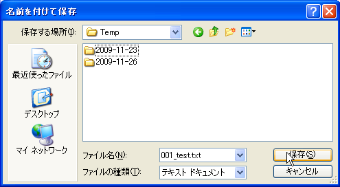 ファイル保存フォルダー画面になるので、保存フォルダーを選んで、「保存」ボタンを押します。