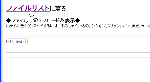 続けて別ファイルをダウンロードする場合は、「ファイルリストに戻る」の文字部分をクリックすれば、最初のリスト画面に戻ります。そのまま終了する場合はブラウザを閉じても構いません。