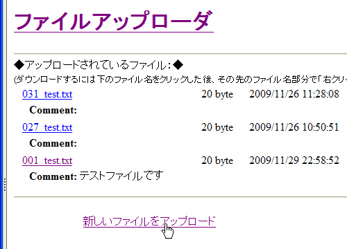 現在、宅ファイル便を使って大きなサイズのファイルのやり取りをしていますが、宅ファイル便は保存期限が3日と少なく、メールを毎日見ないと消えてしまいます。そこで自前のファイルアップローダを作りました。(と言っても、こちらも永遠にというわけにはいきません。30日迄保存されます。)