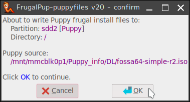 以上でPuppyの実行ファイルは全てターゲットUSBの第2パーティションに書き込まれたが、