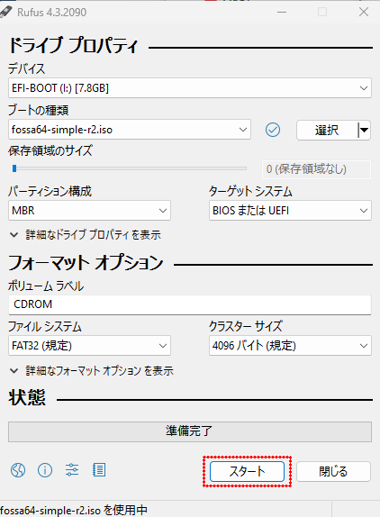 1GB以上の容量の USBメモリを準備して USB端子に接続して Rufasを起動する。(USBメモリの既存データは完全に上書きされる)