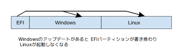こうした問題を何とか出来ないか考えてきたが、最近になって一つの解決策を思いついた。それは Grub2の ESPパーティションを Windowsの存在するドライブとは別のドライブに配置しておくことで、Windowsのアップデート処理から独立できるのではないかというアイデアだ。