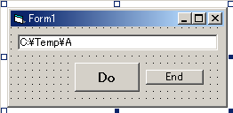 右図のように Form にテキストボックスとコマンドボタンを配置し、コーディングを